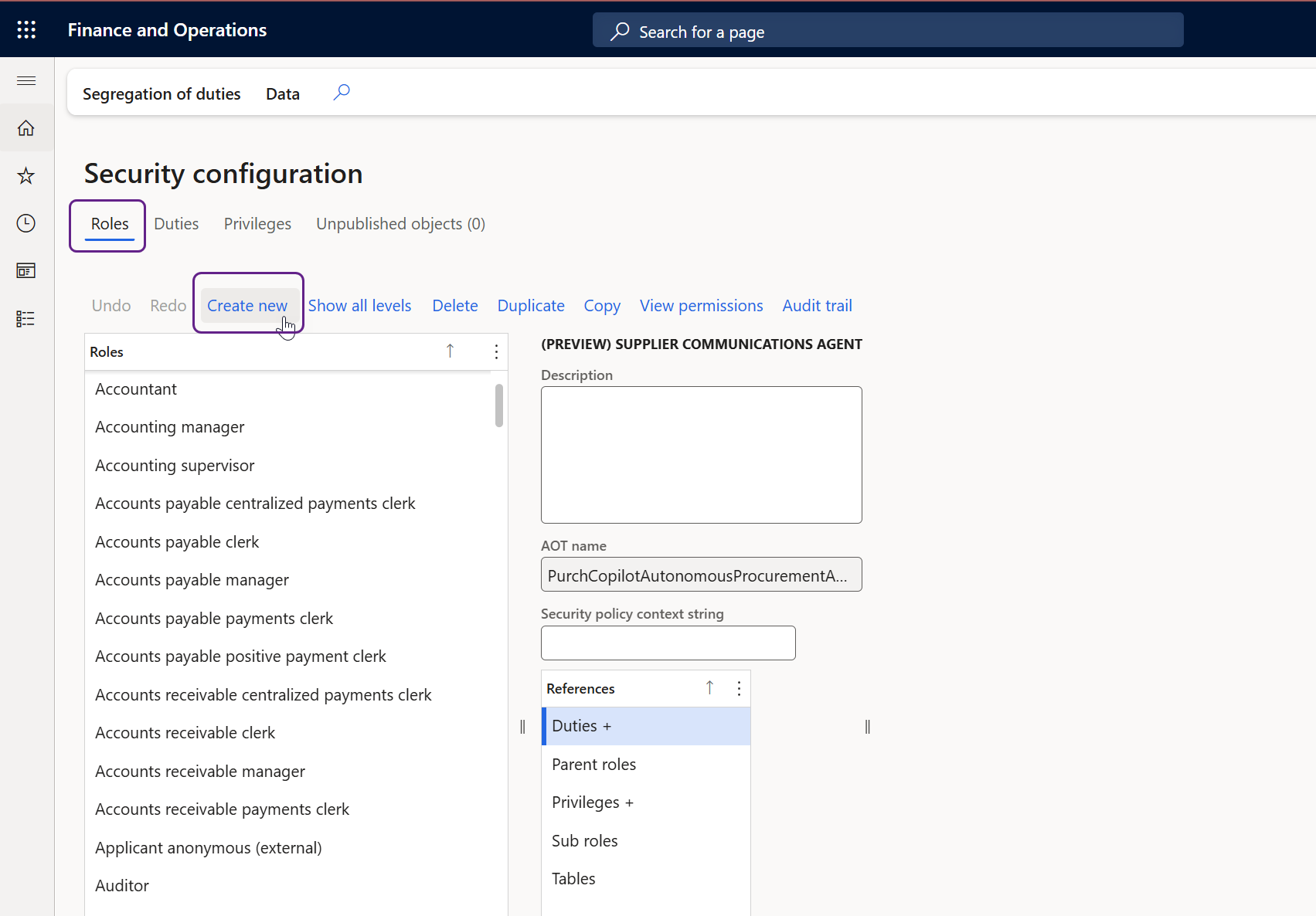 Créer un nouveau rôle dans Dynamics 365 F&O