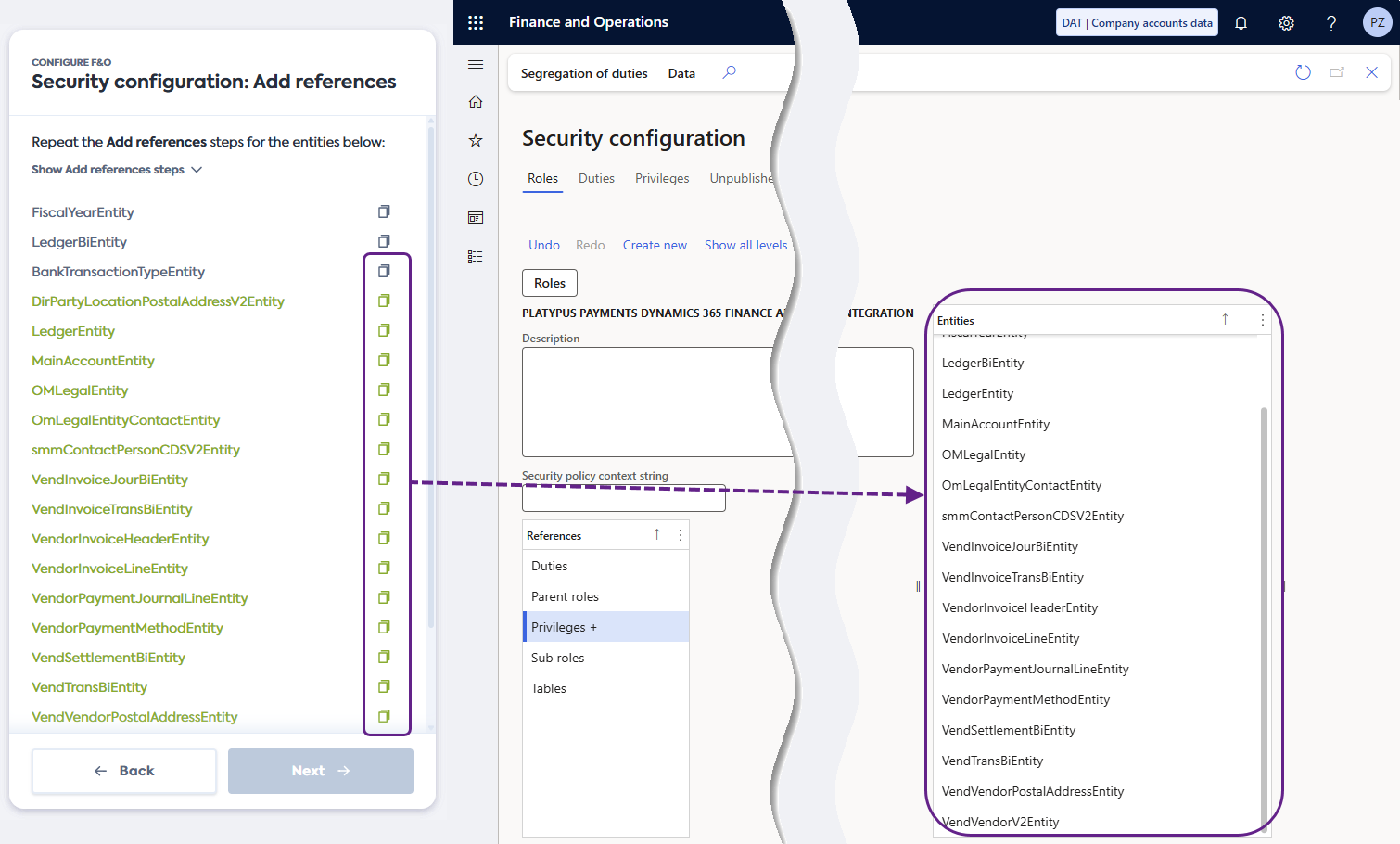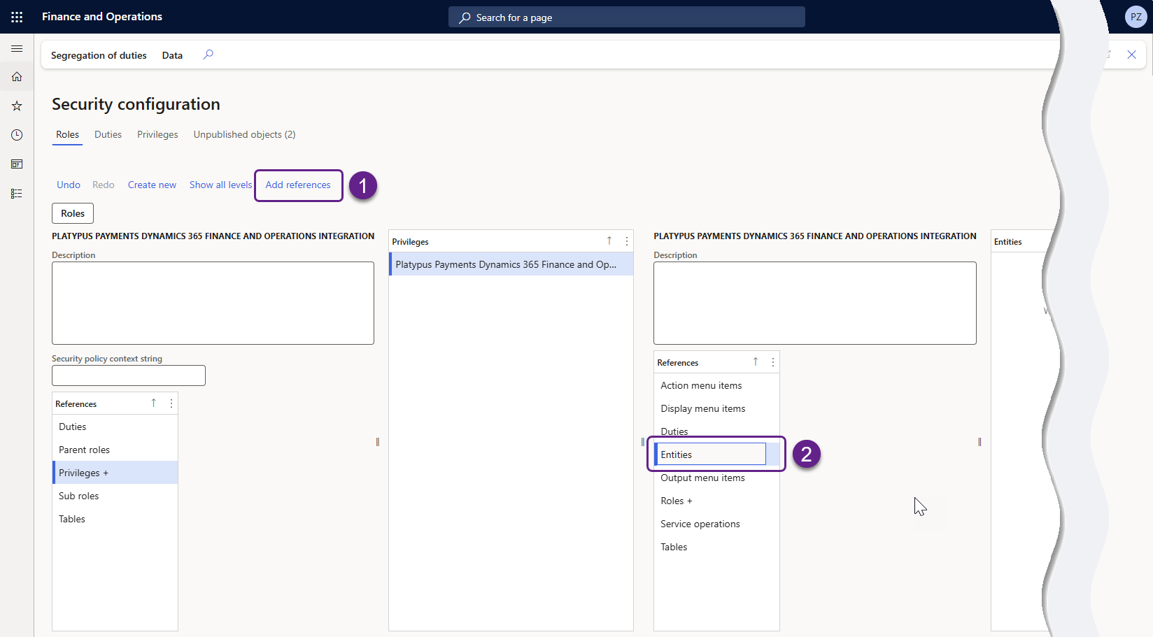 Dans la section References, sélectionnez Entities et cliquez sur Add references.
